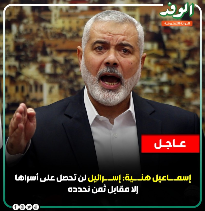 قال رئيس المكتب السياسي لحركة حماس إسماعيل هنية، الخميس، إن إسرائيل لن تستعيد أسراها إلا بدفع الثمن الذي تحدده الحركة، مؤكدا أن حماس مستعدة لخوض "معركة طويلة".